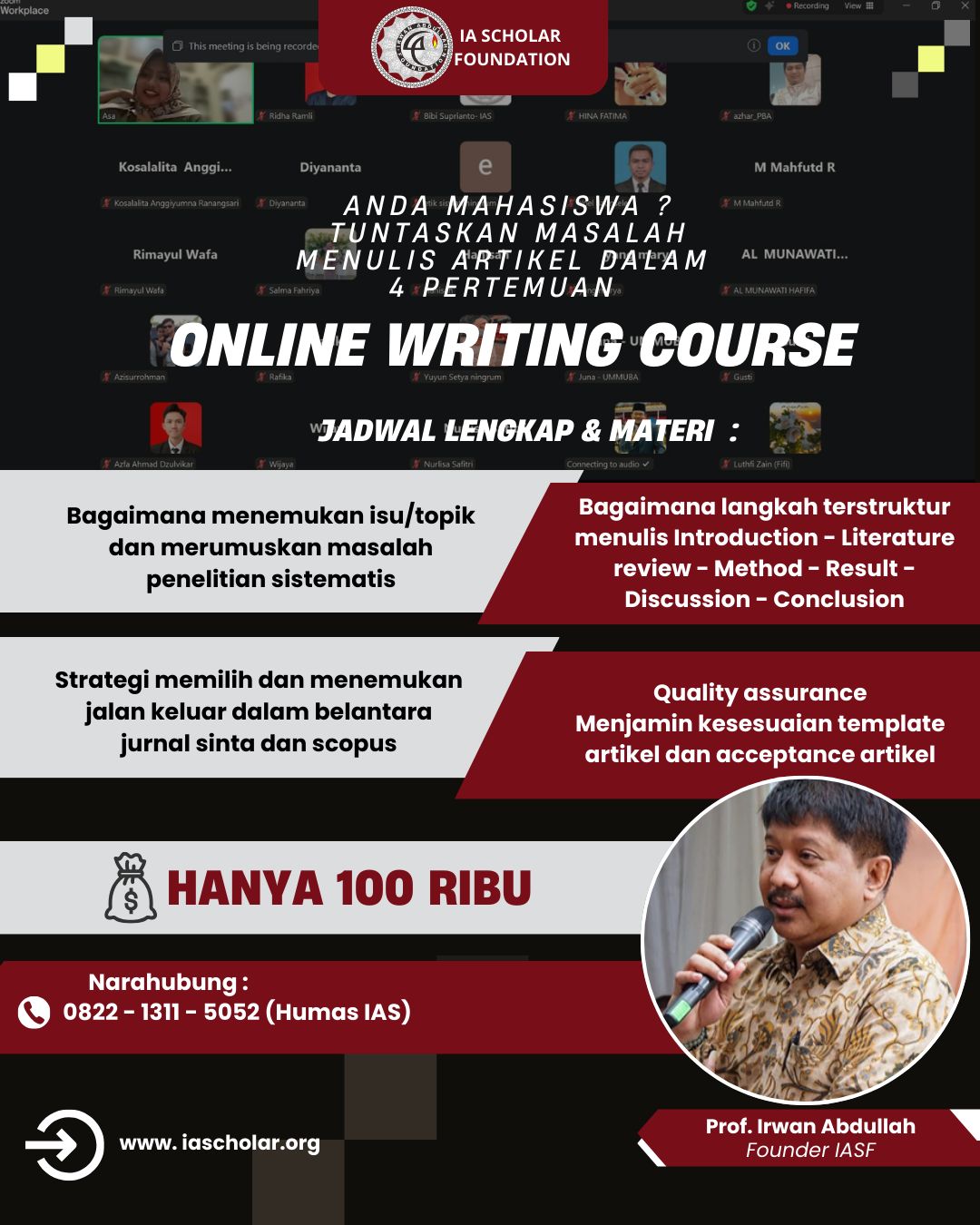 “Dimohon bantuan teman-teman dan Sahabat IAS untuk membagi info tersebut ke grup mahasiswa dan dosen atau individu yang membutuhkan peningkatan kompetensi akademis. Atas bantuan dan dukungan kami haturkan terima kasih.”