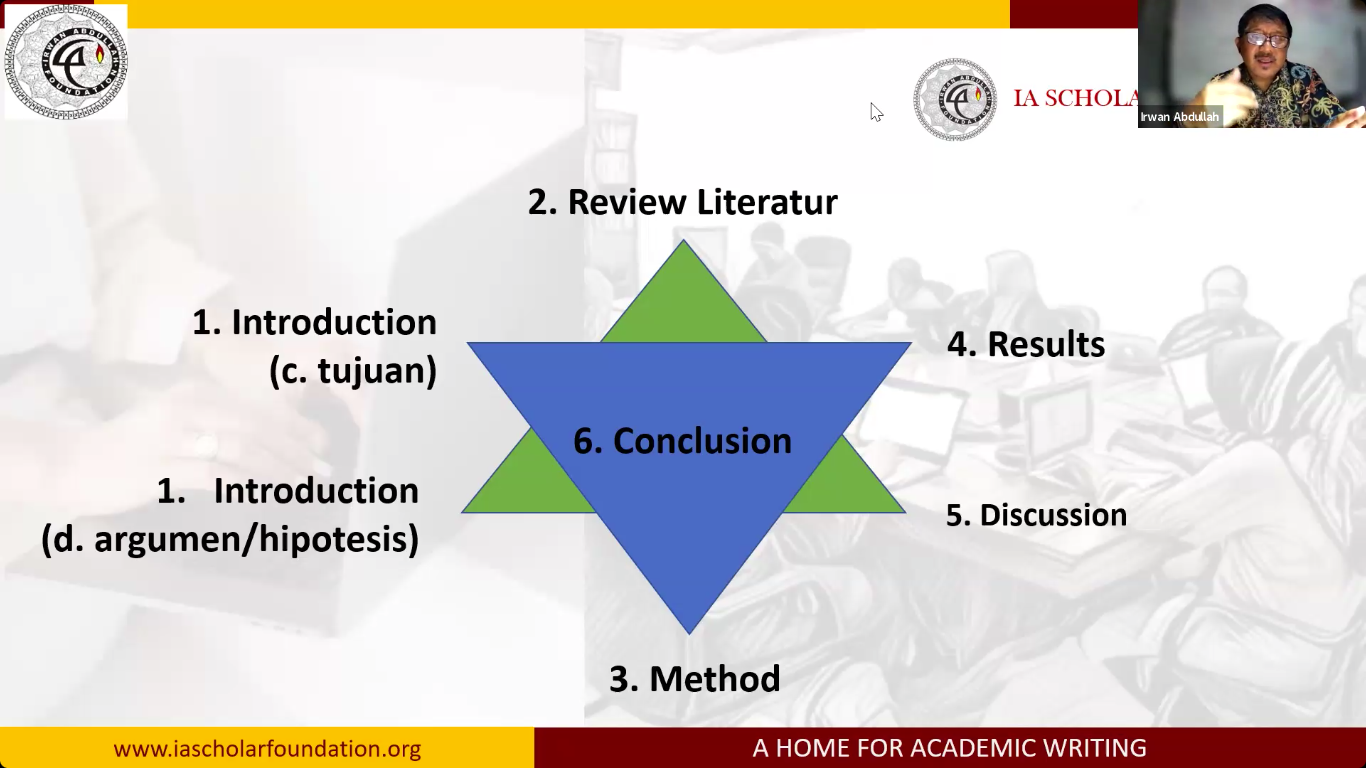 Kedua, Prof. Irwan menekankan pentingnya pemahaman terhadap struktur dasar artikel ilmiah bereputasi internasional atau yang ia sebut sebagai “rukun Scopus”, yang meliputi introduction, literature review, method, results, discussion, dan conclusion. Struktur ini harus dipahami secara mendalam dari paragraf ke paragraf, mengingat IA Scholar Foundation menerapkan template penulisan artikel dengan 33 paragraf sebagai standar dalam penyusunan artikel jurnal bereputasi Scopus.